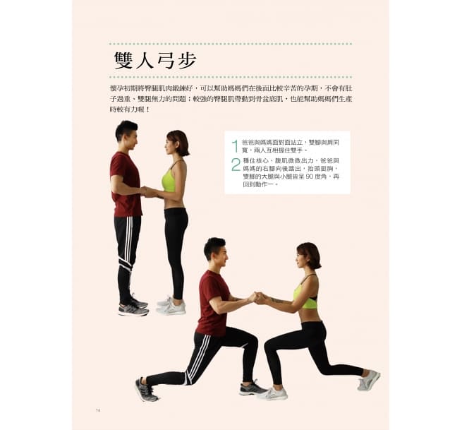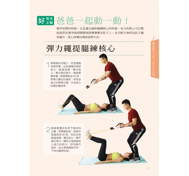 針對三階段孕期設計的21組專屬運動,以及給好隊友的特別企劃─爸拔一起動一動!讓孕妹們運動時不孤單,和好隊友手牽手一起來運動!